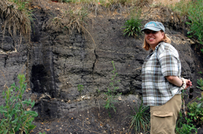 Larry Bristol explains the site geology and demonstrates the nature of its sediments.